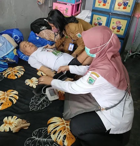 Dalam kunjungan tersebut, selain melakukan pemeriksaan tekanan darah, kadar gula, dan penanganan keluhan umum seperti nyeri sendi dan kelelahan, tim juga memberikan edukasi kesehatan kepada keluarga pasien. Edukasi tersebut meliputi pola makan sehat, pentingnya minum obat secara teratur, serta perawatan kebersihan dasar untuk lansia yang terbaring lama.